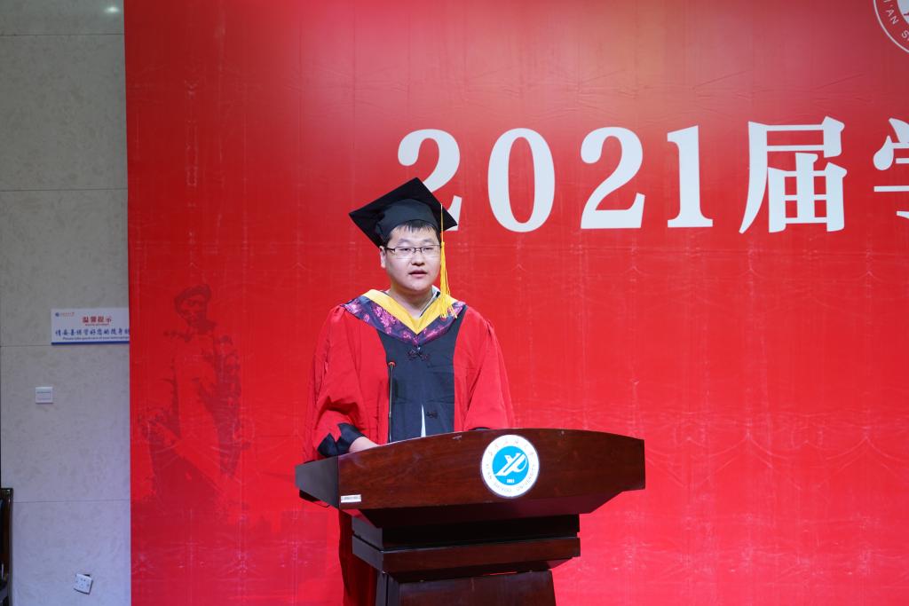 教师代表,丁继军、马儇龙分别结合自身教学经历与各位同学一同回顾四年时光的匆匆而过,展望未来之路的不凡征途。并向同学们热情嘱托,望大家心怀理想,永不言弃,敢于追梦,守住初心,祝愿同学们阅尽千帆,仍是少年。