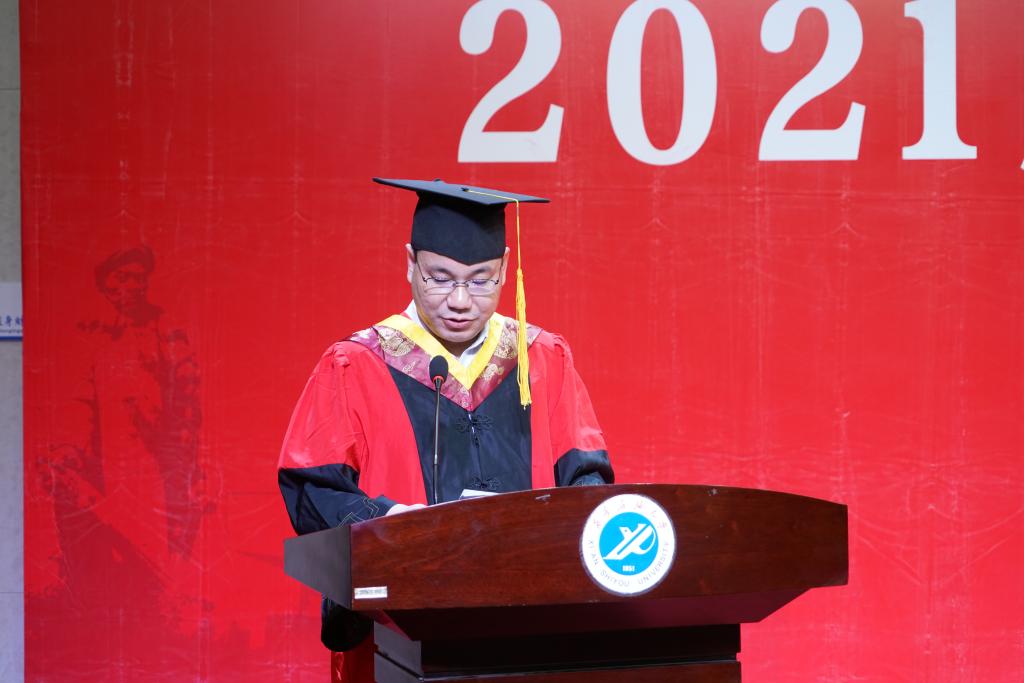 傅海威院长代表学院对2021届全体本科毕业生顺利获得学位表示热烈祝贺,与同学们一起回顾了大学四年的珍贵时光。并深情寄语同学们:一要学无止境,勇于攀登,不要放弃对知识的追求;二要爱岗敬业,努力工作,不负时代的期许;三要不忘初心,热爱母校,有空常回来看看。