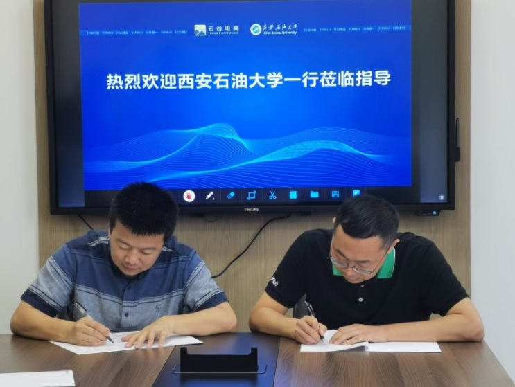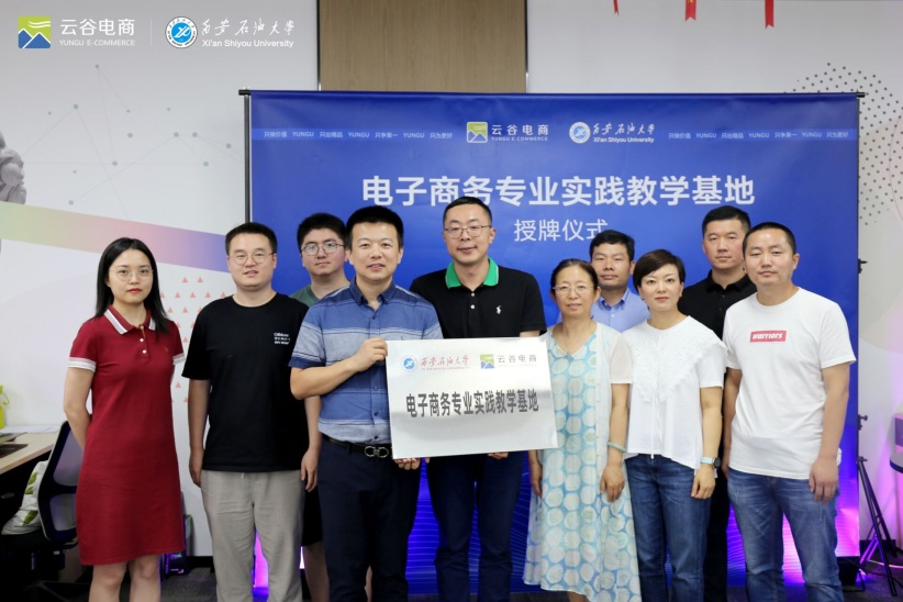 吴勋副院长一行在西安云谷壹号电子商务有限公司总经理王鹏的带领下,参观了解了公司的办公环境、发展历程、主营业务等,双方就丰富合作路径进行了深入交流。双方一致认为,电子商务专业实践性强,信息技术发展日新月异,实现理论与实践的有机融合和相互促进是电子商务专业教师和学生都必须具备的重要素质,双方希望未来在产品研发、营销策划、生产实习、实践教学等方面加强交流合作。随后,吴勋副院长与王鹏总经理分别代表学院和公司签订了“bat365中文官方网站经济管理学院与云谷电商校企合作协议”,并进行“电子商务专业实践教学基地”授牌。