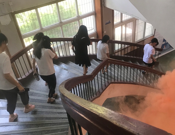最后,在何教官的指挥下,全体人员参与了火灾逃生疏散演练。