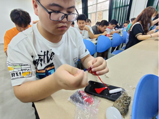 在中国共产党成立100周年之际,迎来了一年一度的端午节。为引导学生增强爱国主义情怀,学习端午文化,营造欢乐喜庆的节日氛围,6月9日-11日,在端午节来临之际,电子工程学院组织学生干部开展“缝香包系彩绳 热热闹闹话端午”主题活动,学生干部共同体验手工制作乐趣,将自己的心意满满当当地塞进香包,通过为学生系五彩绳传递美好祝福。