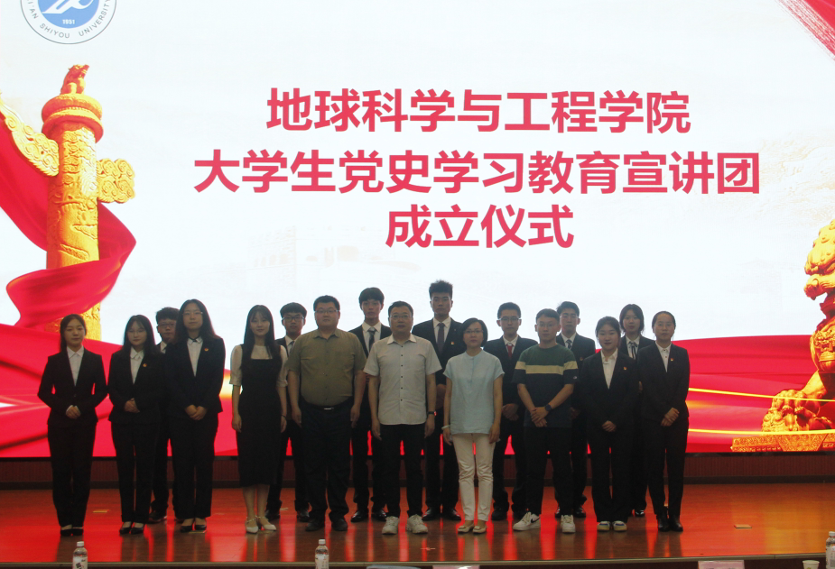 为切实推进党史学习教育宣讲工作,6月7日晚,地球科学与工程学院在鄠邑校区弘石学术报告厅举办大学生党史教育宣讲团成立仪式,学院党委书记马行天、副书记王莹、各年级辅导员和各年级400余名学生参加。