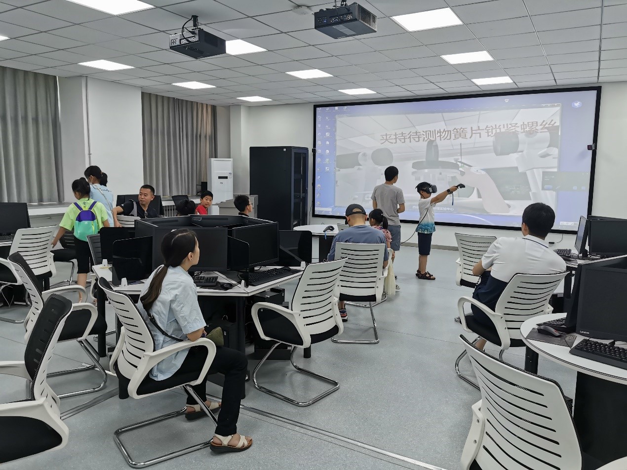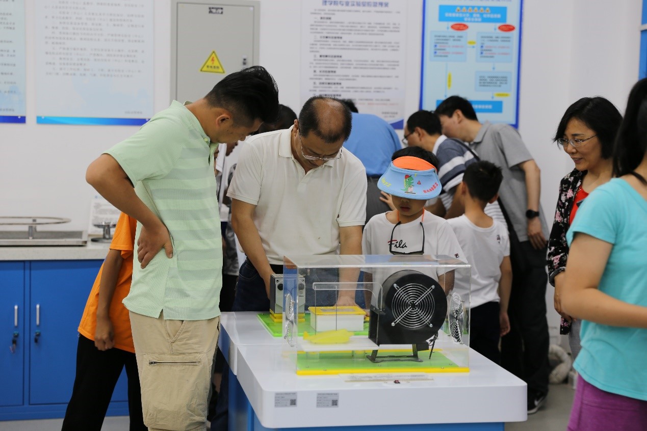 本次活动开放了理学院物理实验中心、VR虚拟仿真实验室和大学物理演示实验室。开放项目包括VR虚拟仿真实验、三球仪、雅各布天梯、太阳能光控飞机、智能家居、人体导电、电磁炮、磁悬浮列车等66个演示实验。小朋友和家长们首先有序参观了大学物理演示实验,大家对实验室的演示实验项目充满了好奇,党员老师热情周到的为小朋友及其家长详细介绍了实验项目、实验原理、操作方法及注意事项。小朋友们听的津津有味,随后他们在老师们的指导下,自己动手亲自体验各种实验项目。随后,大家体验了VR虚拟仿真实验等其他项目。为进一步做好疫情防控,增强来访者的体验效果,学院对来仿者进行了分组安排,参加体验的小朋友及家长们全神贯注地沉浸在体验活动中,在学习中获取了知识、获得了快乐。