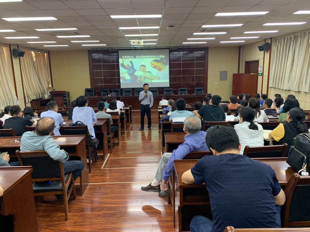 为切实加强学院的防火安全工作,提高广大教职工的的安全防范意识与自救能力。2021年5月26下午2:30,理学院邀请西安圣安消防防火中心田国栋主任进行消防安全知识专项讲座培训。全院100余名教职工参加本次培训。