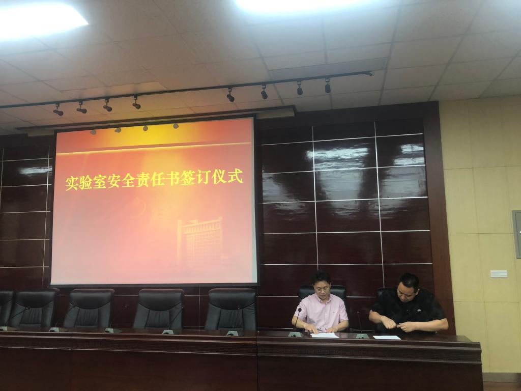 会议第一阶段进行实验室安全检查动员及部署。首先由实验管理处副处长李庆本传达了教育部和陕西省教育厅《关于组织开展2021年度高等学校实验室安全检查工作的通知》,李庆本副处长从近年来国内影响重大的化工类安全事故出发,指出做好实验室安全工作应该作为学院每位教师的基础性和日常性工作,并对照中省有关实验室安全文件精神要求,指出学院实验室目前存在的管理漏洞和安全问题,希望各实验室负责老师认清责任,狠抓落实,把实验室安全事故扼杀在萌芽状态。李善建副院长介绍了学院落实实验室安全工作的具体措施:一是高度重视实验室安全工作,切实加强组织领导;二是签订安全责任书、逐级分层落实安全责任;三是严格落实实验室安全准入制度,确保实验室安全运行;四是认真开展自查自纠,扎实做好排查整改工作;五是强化制度执行,严肃责任追究。会上,由现代分析检测中心主任贾新刚老师和化学化工实验教学中心主任张新强老师分别代表科研实验室和教学实验室与分管领导签订了《化学化工学院实验室安全责任书》。