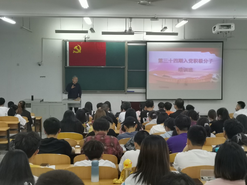 组织员李超伟老师介绍了本次培训班的基本情况、上课安排和考核办法等,宣读了培训纪律。开班典礼结束后,学院党委书记司马文龙以“学习百年党史,做新时代合格大学生”为主题的党课第一讲。司马书记为同学们辅导学习了习近平总书记在党史学习教育动员大会上的讲话精神,结合建党100周年、建校70周年和创建文明校园为同学们做了党史学习教育和爱校荣校主题思想教育,引导学生树立正确思想认识、明确奋斗目标、勇担时代重任,提高综合素质,做好疫情防控等工作,指导同学们要在学习和生活中增强责任意识,磨炼坚强意志,并发挥带头作用,提升党性修养,做新时代有为青年大学生,为创建文明校园做出自己的贡献。