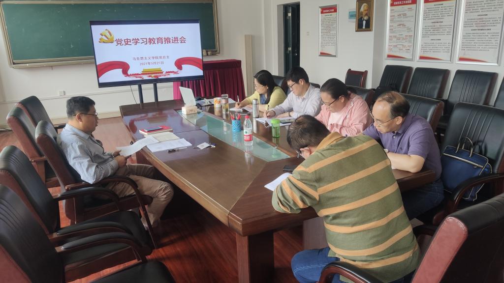 为进一步推动党史学习教育扎实有效开展,5月21日上午,马克思主义学院党总支在雁塔校区1号教学楼818会议室召开党史学习教育推进会,对学院党史学习教育进行再部署再落实。会议由党总支书记张伟主持,党总支委员、各教工党支部书记参加了会议。
