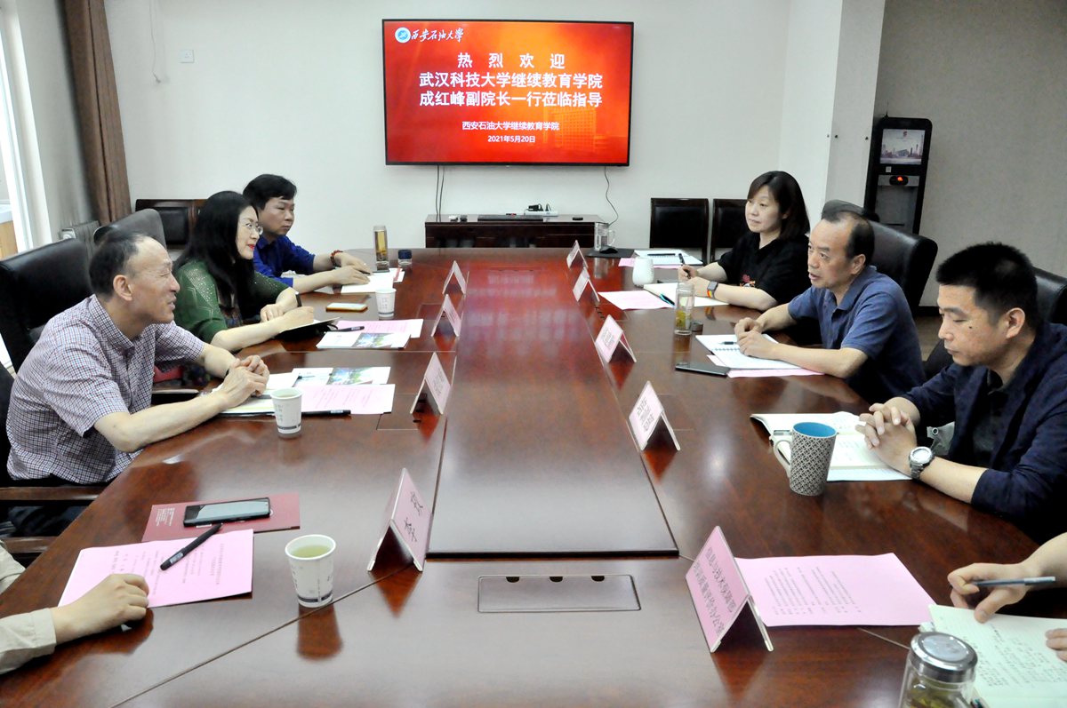 5月20日上午,武汉科技大学继续教育学院副院长成红峰一行4人走访bat365继续教育学院。继续教育学院院长谈建勤,综合部、学历教育部、培训部、信息与技术保障部负责人参加座谈会。