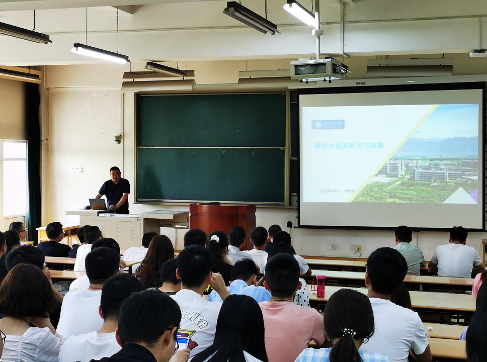 5月14日,bat365学生工作处副处长、就业指导中心副主任樊晓旭在雁塔校区东阶301做了《研究生职业生涯规划及就业形势与政策辅导》专题报告会,研究生工作部副部长李甦出席会议,研究生工作部工作人员、各院系研究生辅导员及研究生毕业生代表共200余人参加了报告会。报告会由李甦副部长主持。