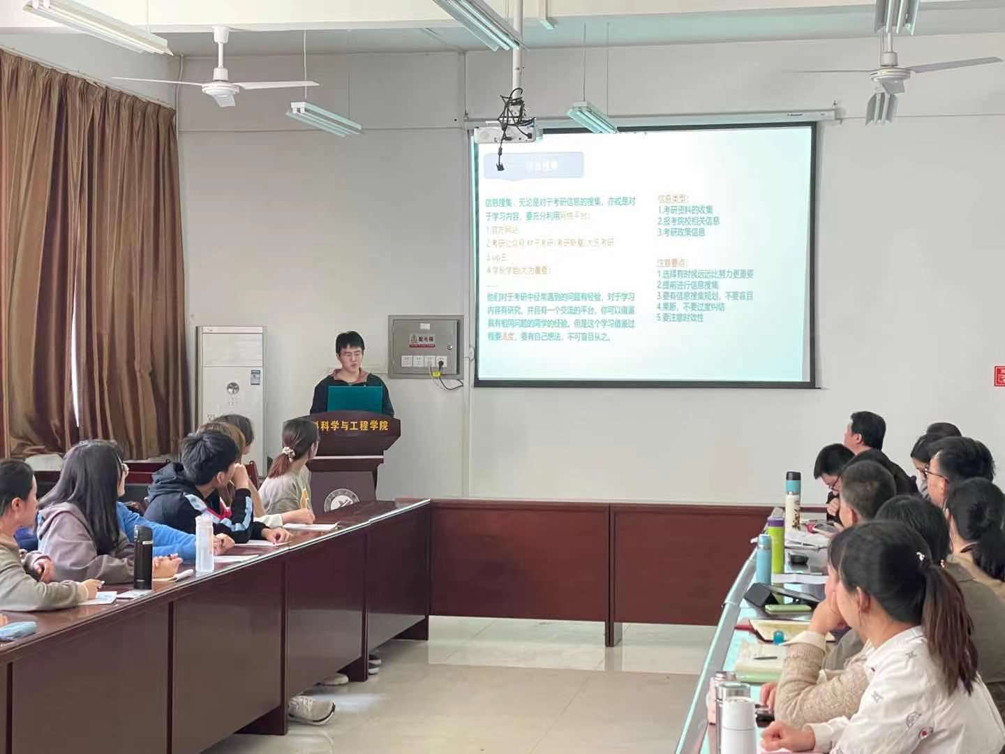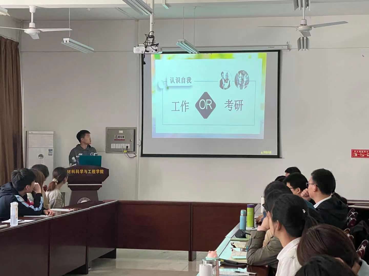 同学们就个人学校报考选择、专业选择、时间规划等复习过程中遇到的各种困难、问题与困惑等积极提问,新材料系参会教师及受邀嘉宾结合自身经历、理解及心得,有针对性地给同学们提出了许多有益的考研指导和中肯的建议,达到了预期效果。会场气氛十分热烈,考研氛围非常浓厚。新材料系全体教师纷纷表示将全力指导学生考研,切实做好每位学生的成才服务工作。目前该班25名同学全部确立了考研目标并全身心投入了备考。