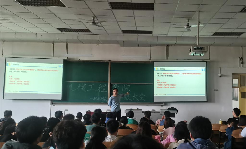 根据学校进一步严肃校规校纪加强学生教育管理专项教育的统一安排,机械工程学院于4月19日起陆续召开学生工作例会、线上线下结合的各级年级大会、各班班会、学生干部会议,认真学习《学生手册》中《bat365中文官方网站学生管理规定》、《bat365中文官方网站学生违纪处分规定》等学生管理内容,并进行校运动会、“五一”假期等安全纪律教育,同时安排各年级的重要事项。各年级辅导员主持相关会议。