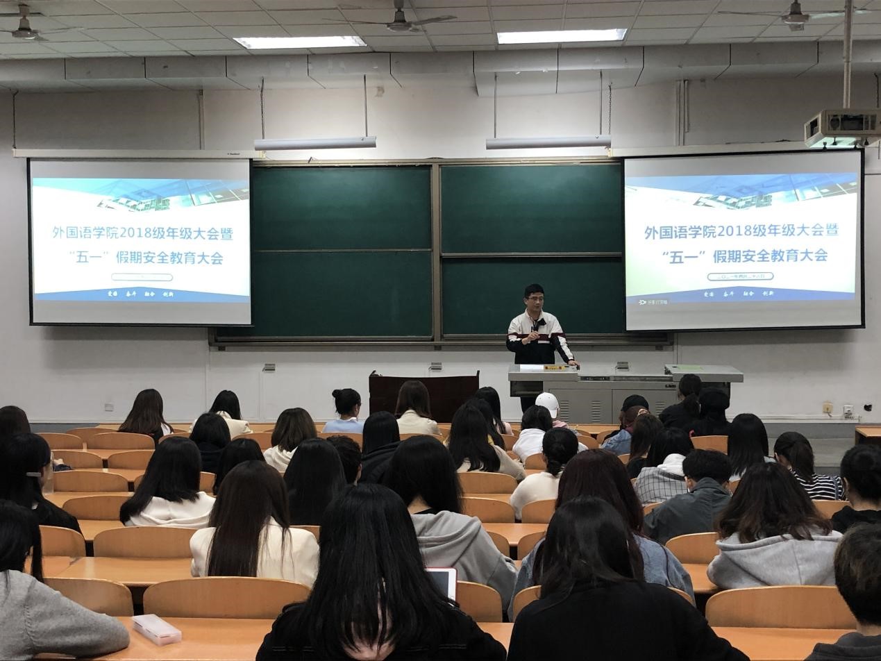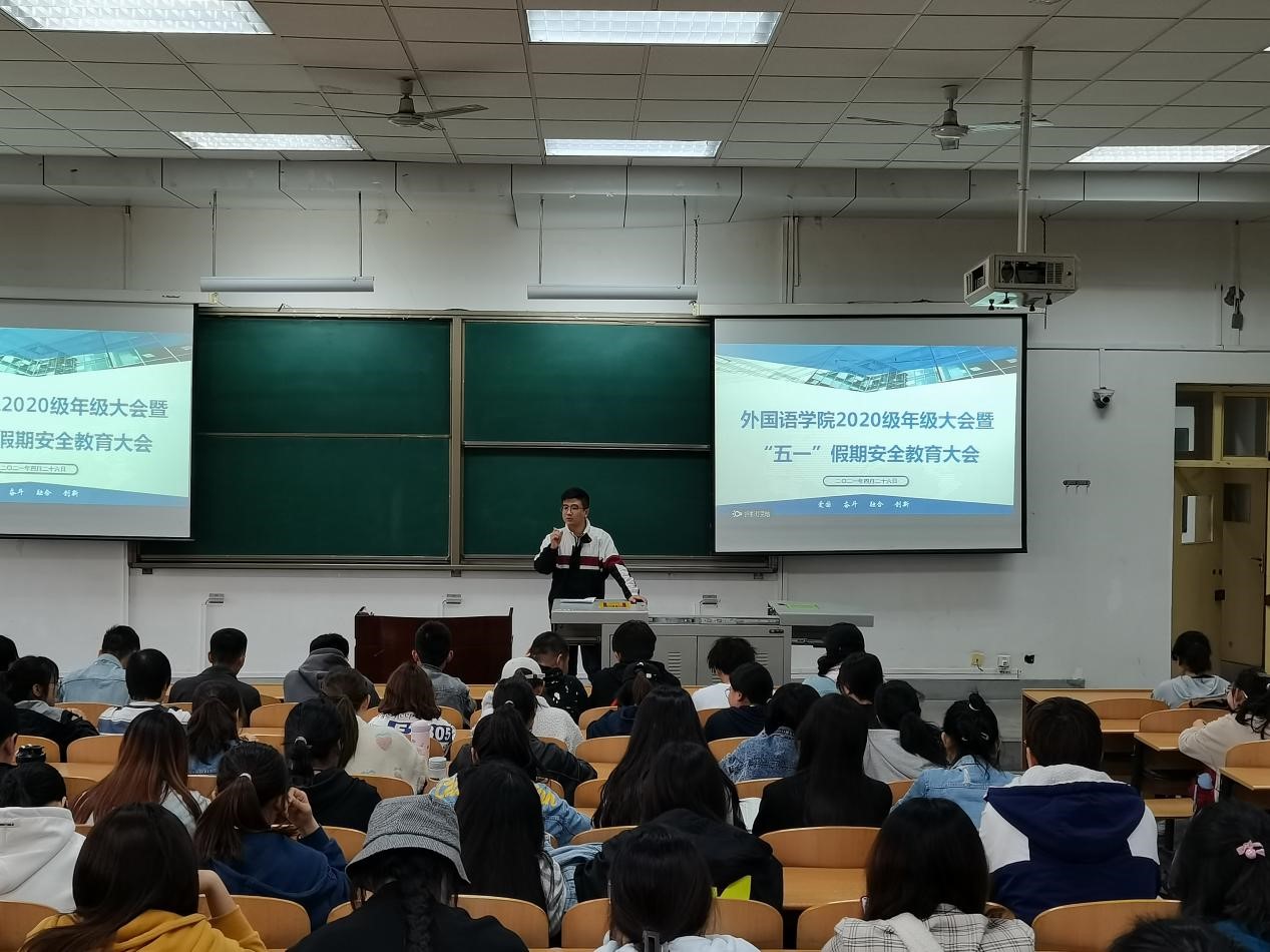 根据学校和学院学生工作教育安排部署,4月26日、28日,辅导员陶李、陈浩在鄠邑校区A239、B212分别召开各年级大会暨“五一”假期安全教育大会。