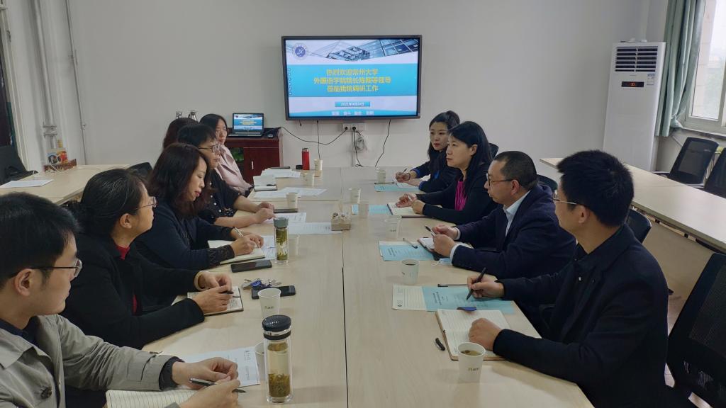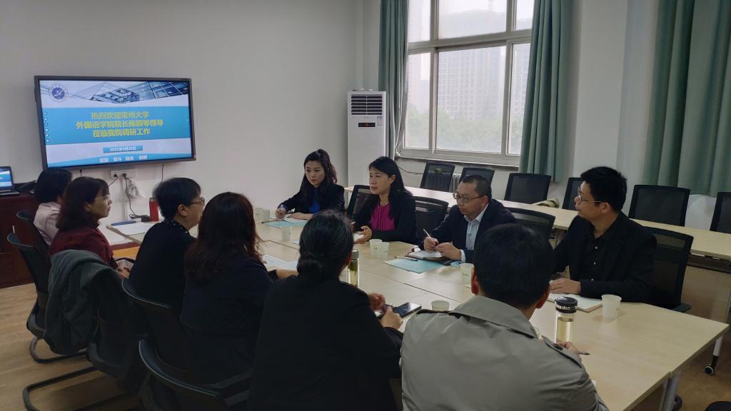 4月20日上午,常州大学外国语学院院长陈颖一行4人来bat365调研学科建设、人才培养和教师队伍建设工作。院长于艳英、副院长刘辉和各教学系部主任在1号教学楼706会议室与来访同仁进行了交流。座谈交流会由于艳英院长主持。