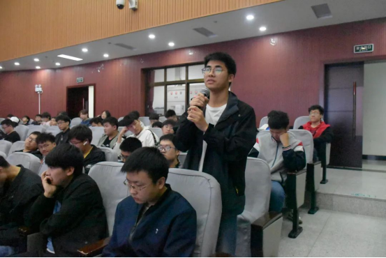 论坛伊始,霍苗老师以图文并茂的形式生动地讲述了航空发动机的原理和结构,重点介绍了航空发动机的关键部分——叶片,叶片制造量占整机制造量的三分之一左右,航空发动机叶片属于薄壁变形零件。霍苗老师提到,如何控制叶片变形以及高效、高质量的加工是目前叶片制造行业研究的重要课题之一,目前已经发展到定向单晶叶片,叶片的性能水平也是一个国家航空工业的标志,因此被誉为“皇冠上的明珠”。在提问环节,同学们就叶片铸造过程以及受损后如何修复等问题与霍苗老师进行了热切的交流。