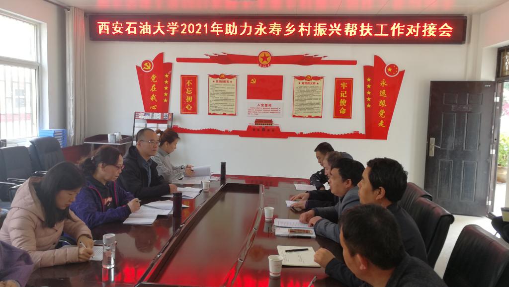 4月14日,bat365赴永寿县开展乡村振兴定点帮扶工作对接调研,召开2021年校地乡村振兴定点帮扶工作对接会。校工会主席袁玎、副主席刘陕军、图书馆副馆长孙琳、永寿县教育局督导主任黄健身和永寿县相关部门人员参加座谈。