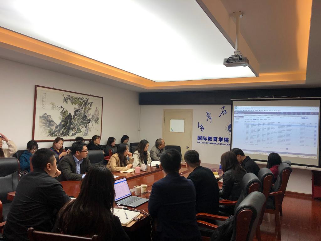 为加强国际学生管理信息化,提升国际学生管理水平,国际教育学院通过招标程序重新采购了最新的国际学生管理服务平台,该平台功能更加完善,贴合当前国际学生招生、教学、管理、校友等各项工作实际。4月14日上午,学院邀请了系统设计方武汉在华网络科技有限公司王传奇副总经理来校进行系统功能使用详细讲解。国际教育学院院长董皓、副院长秦璟、颜庭星及学院综合部、教学运行部、学生事务部全体人员参加培训。