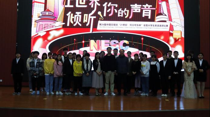 3月16日19:00外国语学院在弘石报告厅举办2021“21世纪·可口可乐杯”全国大学生英语演讲大赛(校园选拔赛)。外国语学院副院长陈武、英语系主任钟泽波、学工办主任张帆、大学外语第一教学部刘西娟和公共外语教学二部毕莹老师担任评委,全校200余名学生参加。