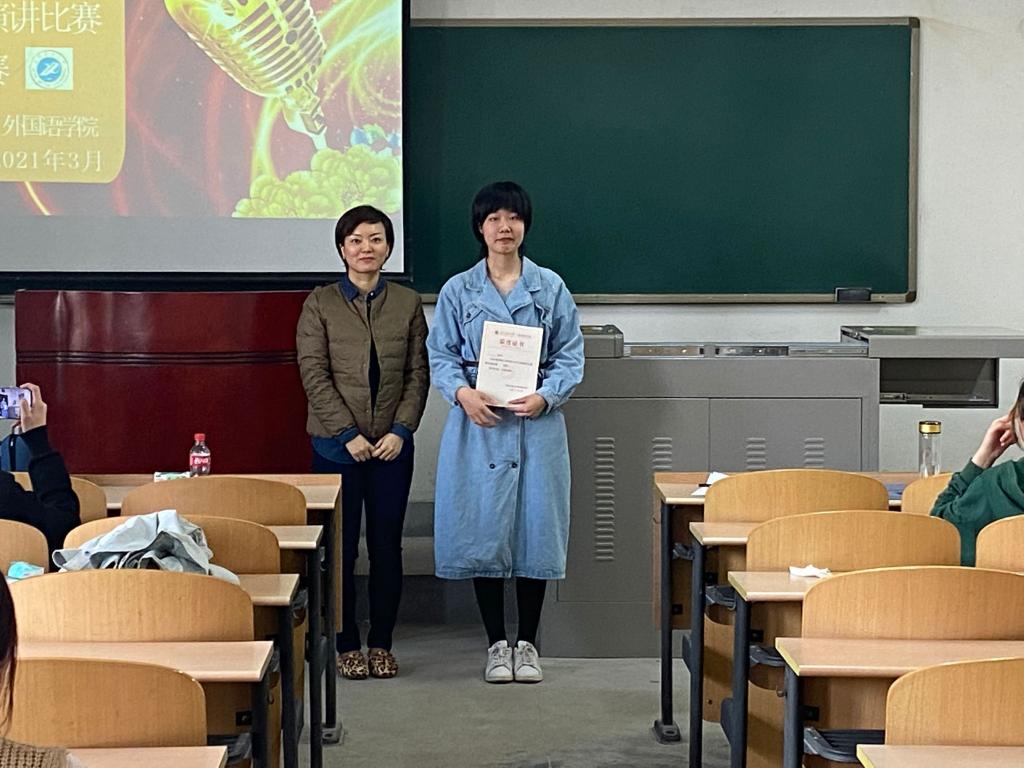 接下来,比赛正式开始。十一位参赛选手就“安全的距离、信赖的距离”和“2021年的我对未来的展望”这两个主题依次上台发表了生动有趣而又富有激情的演讲。选手们声情并茂,以标准的日语发音以及生动的演讲内容获得评委老师和观众的阵阵掌声。