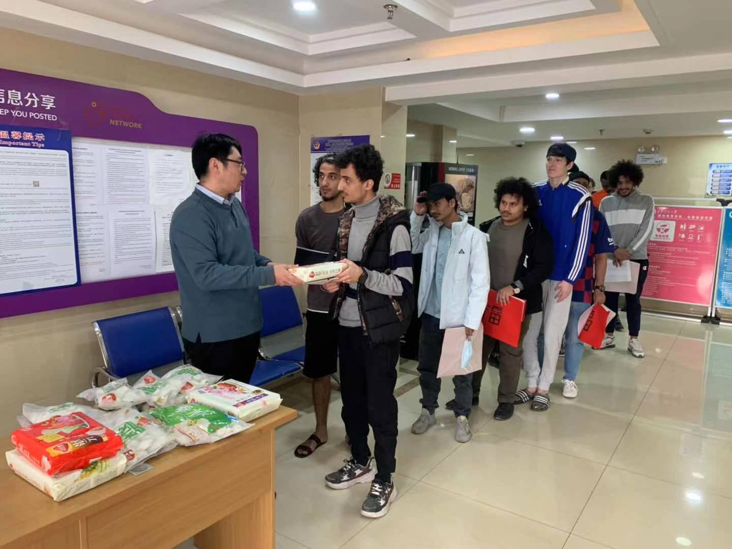 最后,颜副院长代表国际教育学院向每一位留学生同学发放了饺子,留学生们表示,感谢学院和老师为他们送上的祝福和礼物,能够亲身体验中国春节传统文化,是留校期间有意义的活动,他们体验到了中国春节的喜庆,感受到了学校的关怀,