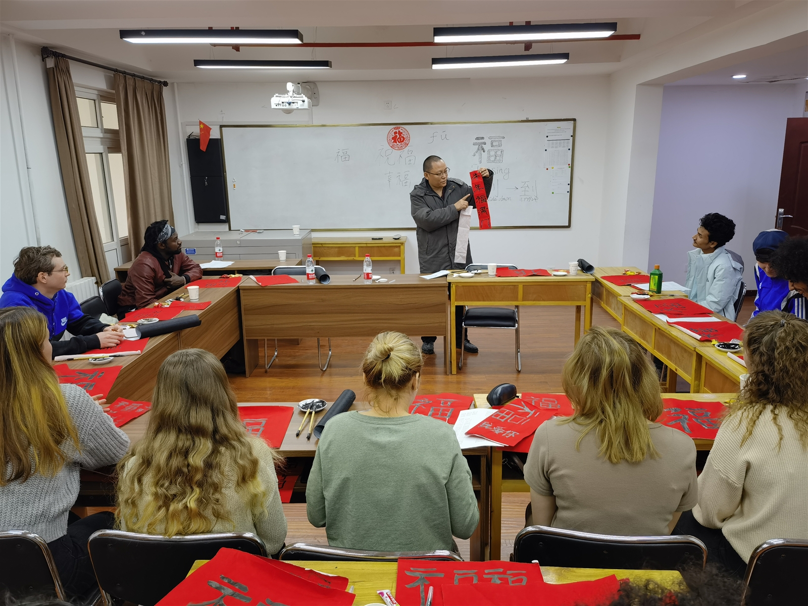 佳节来临,2月9日,在明德校区留学生公寓101教室,国际教育学院举办了“写福字,送祝福”留学生新春慰问活动。副院长颜庭星与辅导员、值班老师等与留学生欢聚一堂,共庆牛年到来。