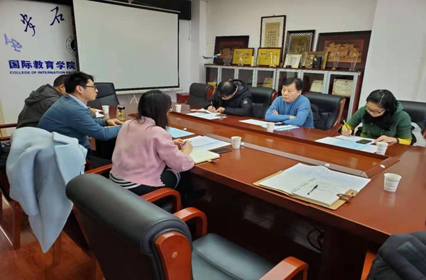 副院长颜庭星详细汇报了bat365假期期间国际学生的疫情防控、值班备勤、后勤保障等工作。目前,bat365留学生按照校内集中住宿、校外居住分类采取相应管控措施。国际教育学院全员24小时留学生公寓值班,每日测温,公寓每日消毒,并严格执行留学生外出登记制度,同时在留学生公寓内组建临时超市,充分保障留学生的日常生活。针对校外住宿的留学生,学院安排辅导员老师逐一家访,并让学生签署个人疫情防控诚信承诺书,截至目前,已完成校外留学生家访40余次。
