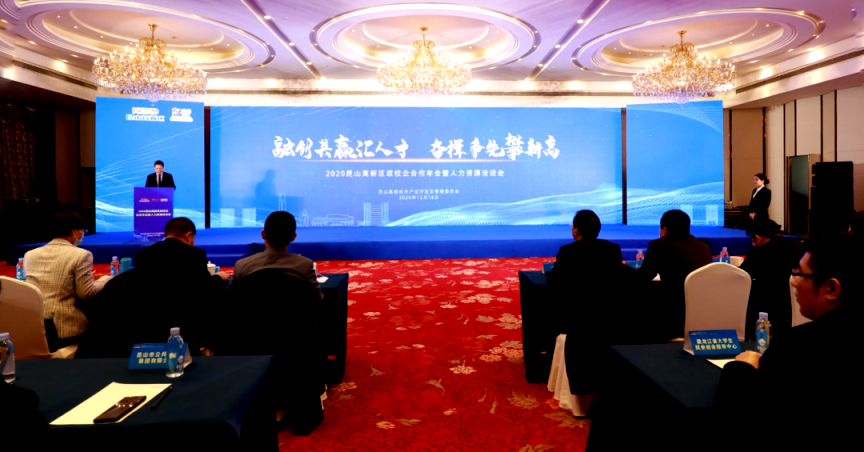 12月18日上午,“2020年昆山高新区政校企合作年会暨人力资源洽谈会”在昆山皇冠酒店召开,昆山高新区党工委副书记、管委会副主任张建文,昆山市人力资源和社会保障局党委书记、局长何智勇,黑龙江省教育厅副厅长姜同河分别致辞。