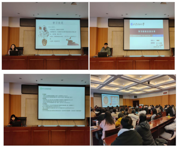 会上,周攀虎同学就学习方法、论文写作、生活与工作等方面为学弟学妹进行了提纲挈领的分析。提出学会“四多”:多听、多看、多问、多做。并就论文写作中的摘要和关键词、引言、实验方法、结果分析与讨论、结论、参考文献六大部分进行了细致的讲解分析。薛洋同学以自己的成长经历为时间轴,分享了从研究生入学初的迷茫,到科研学习柳暗花明的过程,就自己的经验教训对学弟学妹提出了中肯建议:要积极参加各类竞赛,努力做好科研,做到不放弃、不懒惰、不应付。吕东方同学就硕士期间的学习心得及个人规划进行分享,她提醒同学们上课认真听讲,勤做笔记,努力提高成绩,努力提高外语水平,做好学业规划,积极参加竞赛,勇于尝试,不断挑战自我,开阔眼界。