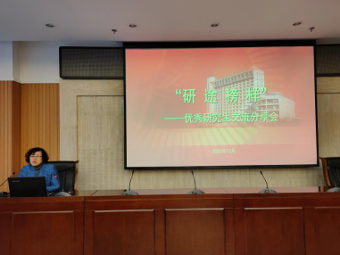 会议最后,高荣芳部长做总结讲话,她高度赞扬了三位研究生获奖代表的分享报告,肯定了他们为此次交流分享做的精心准备,她希望与会学生能够积极向榜样看齐,学其所长,拼搏进取。同时她也给同学们提出了几点要求:一是要勤于实践,学会将理论与实践相结合,实践与应用相结合,积极投身于科研之中,不断开阔视野,奋发向前;二是要积极参加竞赛,参与申报科研项目,以目标为导向,努力做好科研,积极投入研究生学习生活中;三是要善于学习,学习身边老师、同学的优良品质,培养良好的科研习惯,不断充实完善自身。