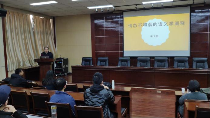 12月10日下午15:00,应外国语学院邀请,西安外国语大学外国语言文学研究中心徐玉臣教授在雁塔校区第五会议室带来了题为“情态不和谐的语义学阐释”的学术报告。院长于艳英、副院长刘辉、副院长陈武及全体教师和MTI研究生参加了本次学术报告会。报告会由刘辉副院长主持。