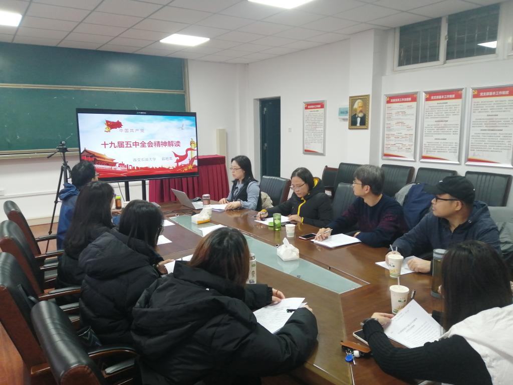 会议第二阶段,邀请马克思主义学院副教授、大学生宣讲团指导教师郭艳英给全体师生做了《十九届五中全会精神解读》的专题辅导报告。郭老师从十九届五中全会概况、“十四五”规划《建议》的主要内容、全面学习贯彻党的十九届五中全会精神等几个方面为大家解读了十九届五中全会精神。辅导报告全面深入,细致到位,为宣讲团成员深入学习、全面领会党的十九届五中全会精神启发了思路,理清了脉络,具有很强的指导作用。