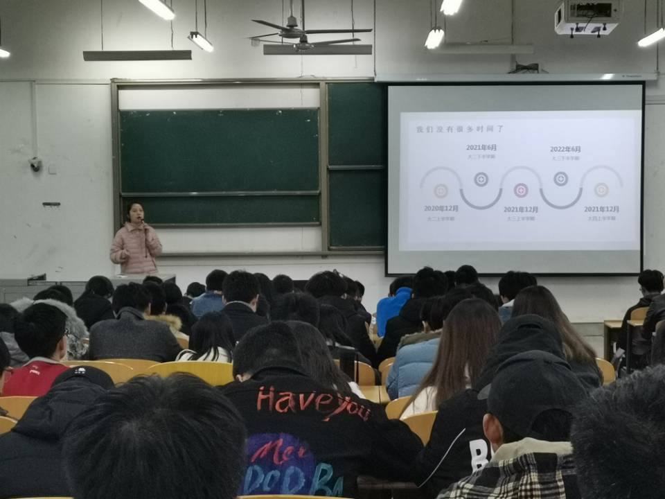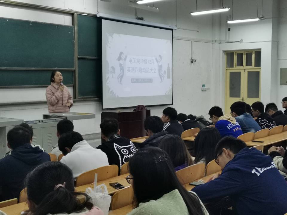 为助力同学们在今年12月份的全国大学生英语四级考试中取得优异成绩,提高我院英语四级通过率,电子工程学院2019级英语四级学习小组在辅导员沈轩羽老师的指导下,开展了英语四级强化班、英语四级动员大会、四级线下模拟考等一系列英语四级强化工作。2020年11月27日18:10,电子工程学院2019级在bat365中文官方网站鄠邑校区B区教学楼112教室举行了四级冲刺动员大会,我院2019级辅导员沈轩羽老师以及220余名即将参加12月英语四级考试的学生参加了此次动员大会。此处大会旨在鼓励学生积极备战12月的英语四级考试,在有限的时间内更好的安排学习备考计划。