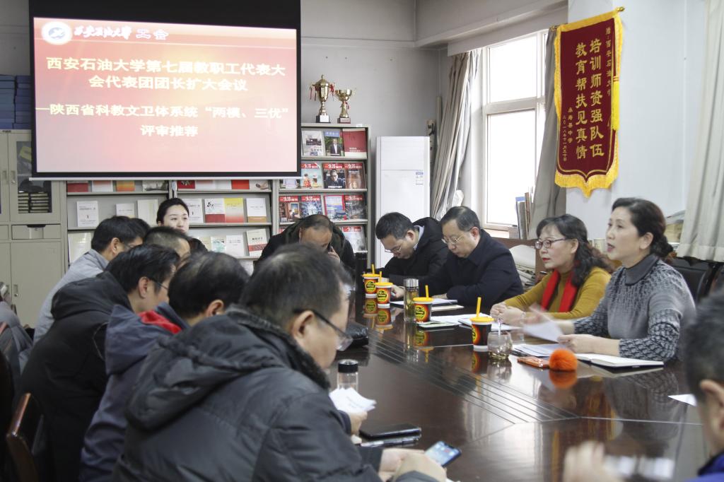 根据陕西省教科文卫体工会《关于开展陕西省教科文卫体系统模范职工之家、模范职工小家、优秀工会工作者、优秀工会积极分子、优秀工会之友选树活动的通知》要求,bat365将推选优秀工会工作者、优秀工会积极分子、优秀工会之友候选人参加陕西省教科文卫体系统评选。11月25日下午,第七届教代会代表团团长扩大会在bat365雁塔校区工会会议室召开,按照文件要求,选举以差额方式评选,来自bat36518 个部门工会对18位陕西省教科文卫体系统优秀工会积极分子候选人进行了投票选举,同时评选出了bat365陕西省教科文卫体系统模范职工小家、优秀工会之友、优秀工会工作者。本次评选活动各部门工会高度重视,评选中各部门充分发扬民主,广泛听取党政领导和职工群众意见,各部门工会积极参与,认真推荐,把评选推荐过程变为推进基层工会工作和加强工会自身建设的过程,体现了先进性、代表性和广泛性。