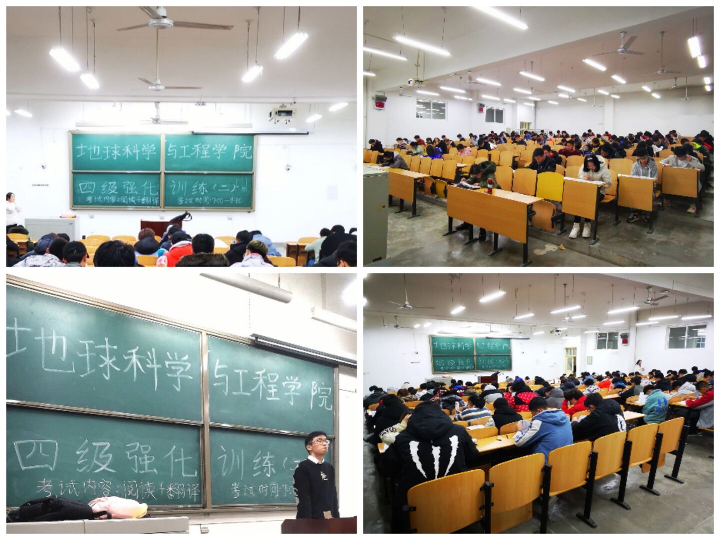 2020年11月24日晚19:00,地球科学与工程学院在B214和221教室举行第二轮四级模块化测试。学院大二、大三年级共200余名学生参加,学工干部监考。