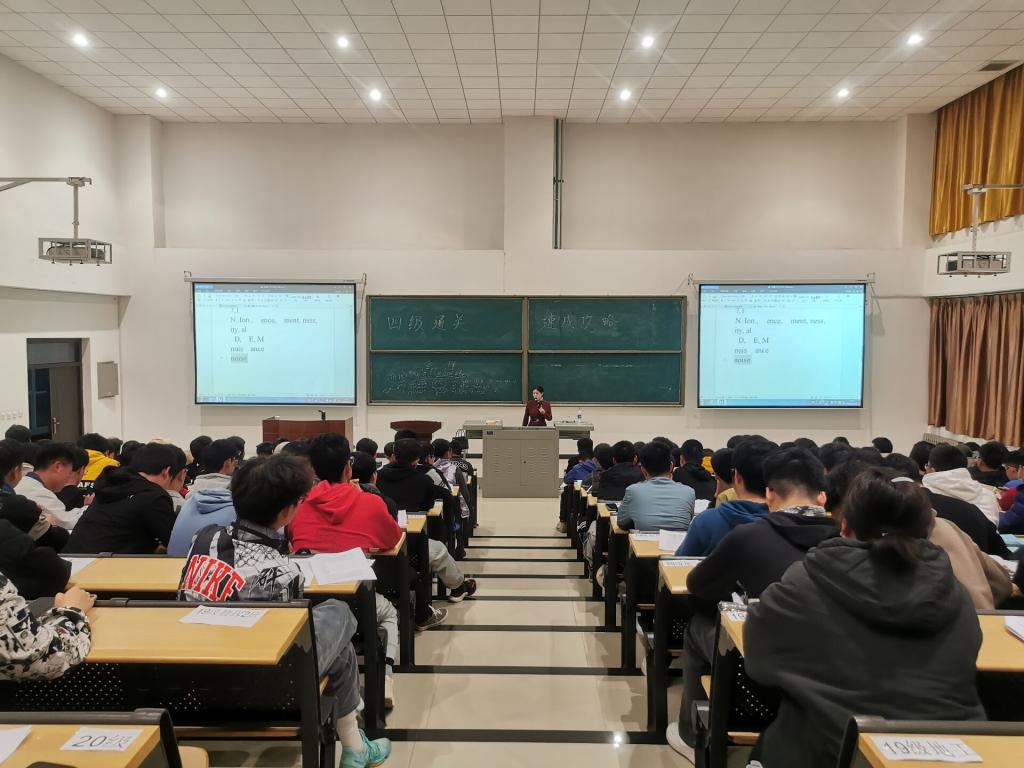 2020年11月19日下午19:00,地球科学与工程学院在bat365中文官方网站鄠邑校区石工地科楼115教室顺利举办四级通关系列讲座第一讲。由英语辅导名师葛琳主讲,学院各年级学生200余人参加讲座。