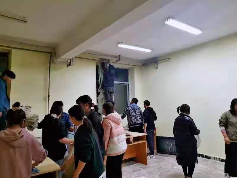 在活动中,2020级辅导员李彦兵老师带领学生们发挥绘画、书法等特长,着重提出宿舍走廊以及宿舍自习室的文化设计方案。为此,学院组织学生将优秀的绘画作品张贴在宿舍走廊两侧上,利用所学的专业知识自主设计装饰宿舍自习室。同学们积极参与壁画的张贴与设计,不仅展现了人文学院学生的风采,而且潜移默化的提升了同学们的审美和创新意识。此外,人文学院还创造性的为宿舍配备了消防安全器材,增强了校园住宿的安全性,使同学们拥有了独立、安全、温馨、便捷的学习生活环境。