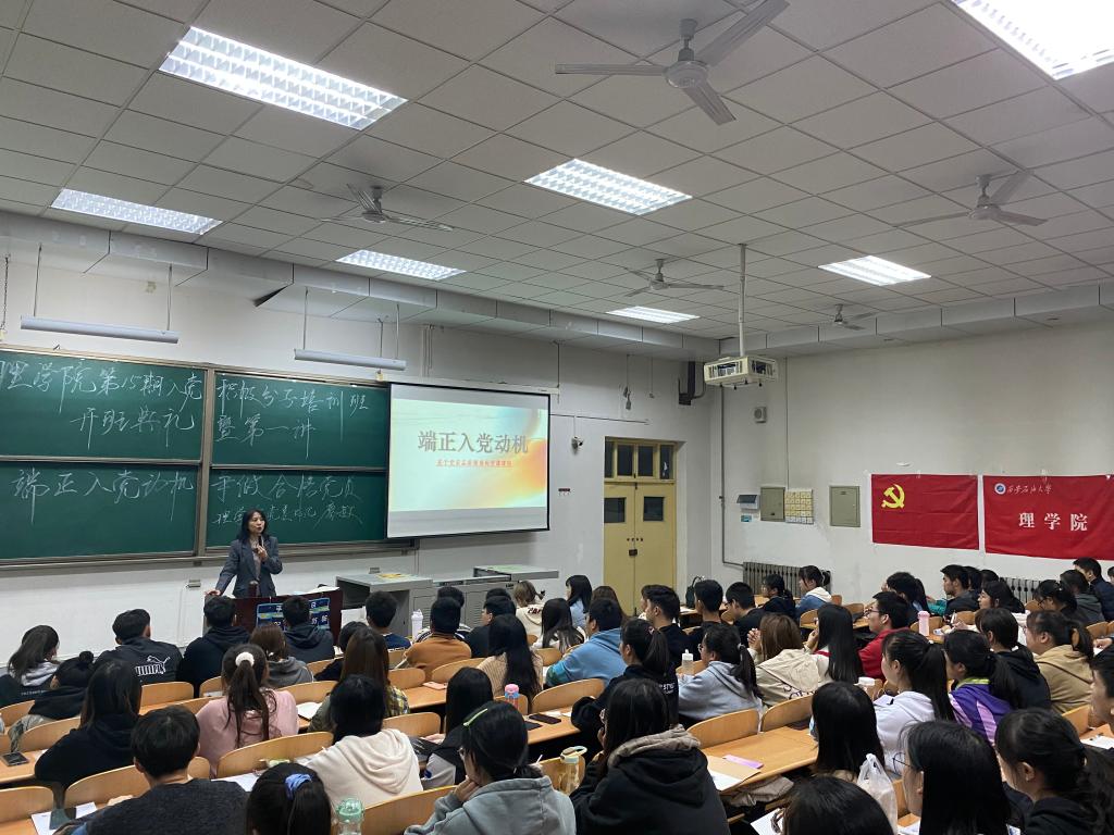 11月9日晚19点,理学院第十五期入党积极分子培训班开班典礼暨第一讲——“端正入党动机,争做合格党员”在鄠邑校区教学A区239教室举行。理学院党委书记廖敏老师主讲,学生管理办公室主任丁亦喆老师主持,各年级辅导员及200名学员参加学习。