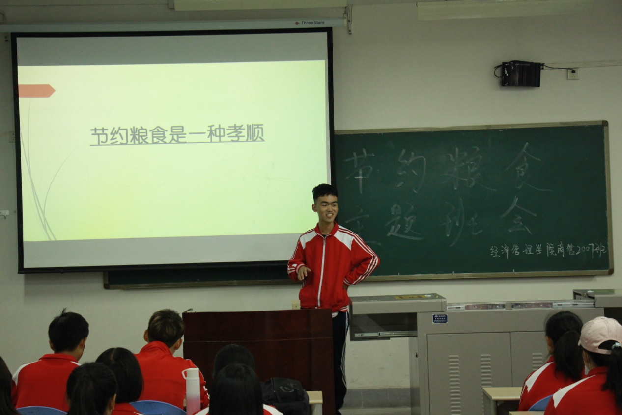 此次班会以“节约粮食”为主题,班会伊始,由主持人仇润琦同学分析我国浪费粮食的现状并提出节约粮食的重要性,呼吁大家身体力行的做好这件“小事”。紧接着由王启妍同学从习近平总书记关于粮食规划的重要指示、我国粮食发展历程、我国粮食的基本国情、浪费大数据分析、贫困地区现状、争做时代青年六个部分进行讲解和分析,结合PPT和视频,给人以直观的体会。接下来宿舍展示环节,班级同学以宿舍为单位对“节约粮食”拟定主题标语,选出代表说出他们的标语并进行了简单的讲解。接着由主讲人对外校以及bat365关于“节约粮食、光盘行动”做出的行动进行了宣传与普及,引导和鼓励同学们积极践行“节约粮食”。接着是宣誓环节,老师同学齐宣誓,共同承诺践行“节约粮食”这一重要事项。