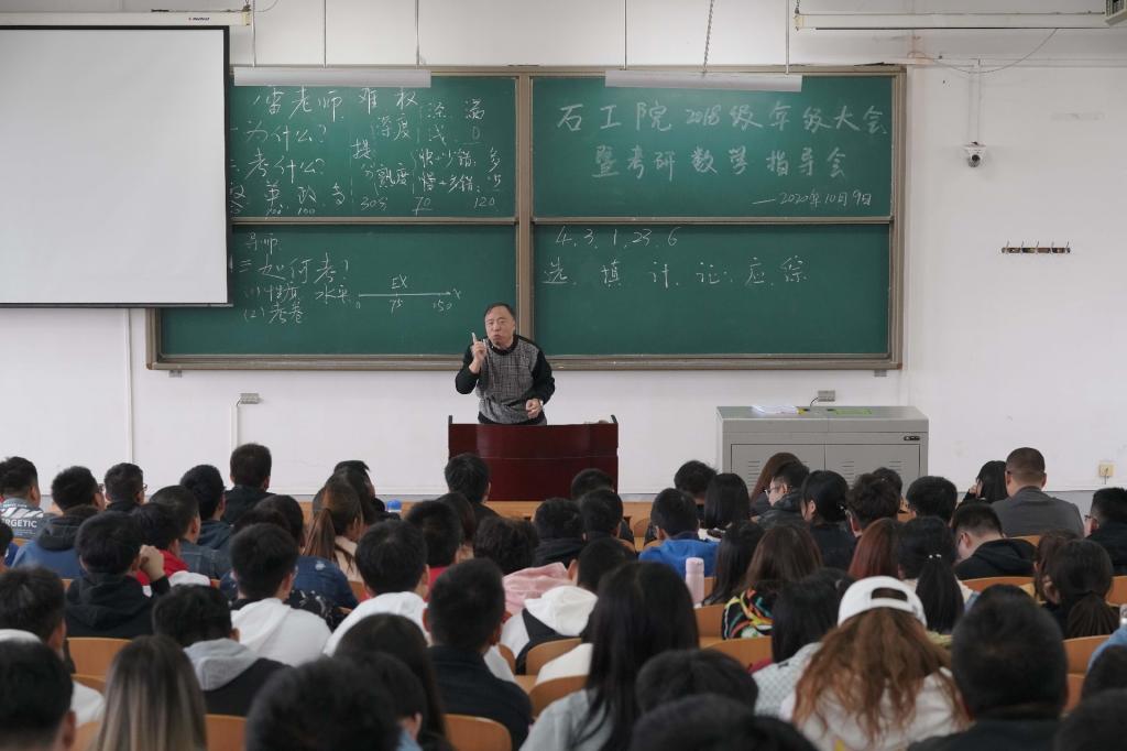 10月9日中午,石油工程学院于鄠邑校区A234教室召开2018级年级大会,动员同学们提前确立考研和就业目标,并做好各项准备工作。辅导员刘晓阳老师就疫情防控常态化下国内经济形势、高校毕业生就业压力、中国三大石油公司贯彻落实中央“六稳六保”及国资委“稳岗扩就业”工作部署形势下的招聘新特点等三个方面,为同学们分析了就业形势、就业风险以及就业机会。他指出,2022届毕业生要认清就业形势,提前规划好就业方向,一方面要有意识地登录三大石油公司的招聘平台,了解石油石化行业招聘需求和岗位要求,掌握行业招聘动向,找准自身不足,不断提升素质能力,特别是要尽快通过英语四六级等就业硬性就业要求和不断深入学习专业知识;另一方面要做好考研的准备工作,特别是要充分了解考研院校招录情况和硕士研究生招生考试内容。