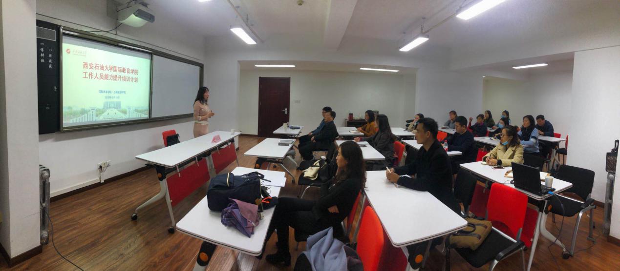10月15日,国际教育学院工作人员能力提升培训在在明德校区培训中心举办。根据培训计划,培训第一期邀请了陕西省教育厅对外合作与交流处副处长郭宏毅作来华留学教育方针与政策的专题讲座,董皓院长在开班仪式上致辞,副院长颜庭星主持。