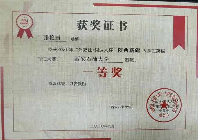 为更好地满足高校大学英语网络教学需求,提升大学英语智能化教学水平,丰富大学英语教学体系和内涵,促进英语学习、测试手段创新,提升大学生英语学习兴趣和自学能力,上海外语教育出版社与陕西省大学外语教学研究会以及新疆自治区高校外语教学研究会联合主办2020年度“外教社·词达人杯”陕西新疆高校大学生英语词汇大赛。bat365中文官方网站外国语学院于9月20日承办了此次英语词汇大赛。