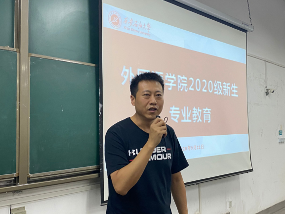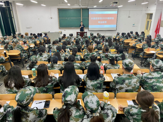 9月22日晚,外国语学院专业教育专题报告会在鄠邑校区B221教室召开,党委副书记王业青、副院长陈武、英语系主任钟泽波、俄语系副主任李更伟和翻译系主任高鹏鹏、学管办主任张帆参加。报告会由学管办主任张帆主持,学院2020级全学生参加听取本次专题报告会。