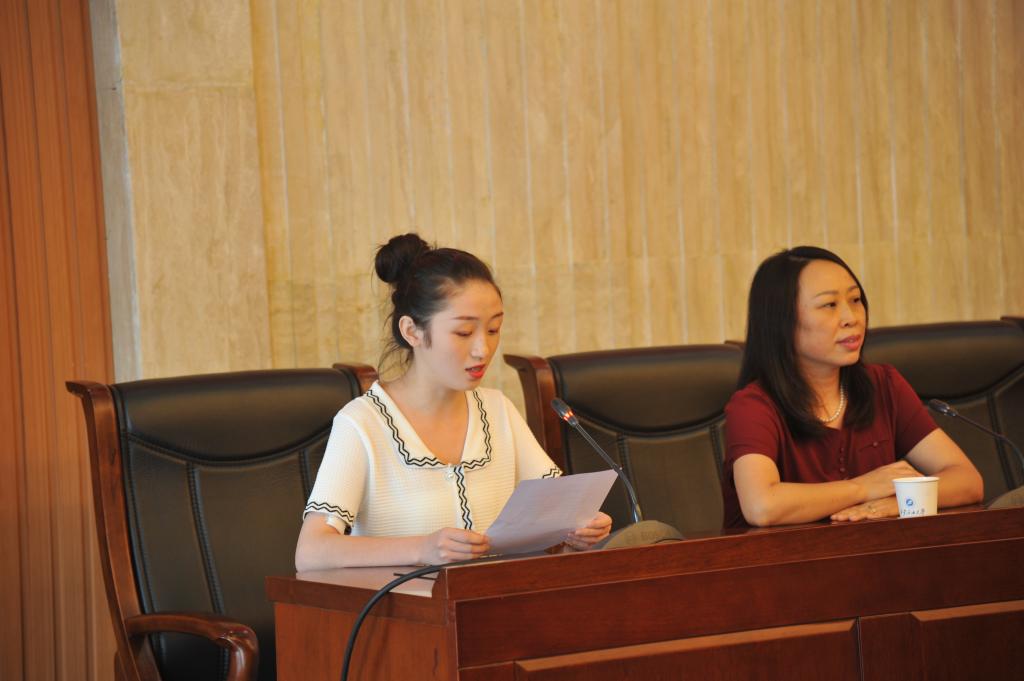 新生代表赵雪瑞发言表达了对研究生阶段学习与生活的期待,她谈到,抗击新冠疫情让中华民族更加团结,也让我们青年人懂得了肩负的社会责任。并表示在今后的学习中将弘扬爱国奋斗精神,勤奋学习,积极践行“好学力行、自强不息”的校训,树立远大理想,努力成为一名德才兼备、勇于担当的新时代青年大学生。