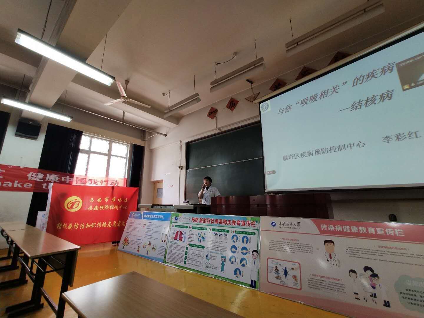 省结核病院护士长刘晓荣、雁塔区疾控中心李彩红教授分别针对肺结核进行了题为《学校结核病预防与控制》和《与你呼吸相关的疾病——肺结核》的报告。详细全面地介绍了肺结核的危害、学校肺结核的防控措施以及感染肺结核后的正规诊治流程。