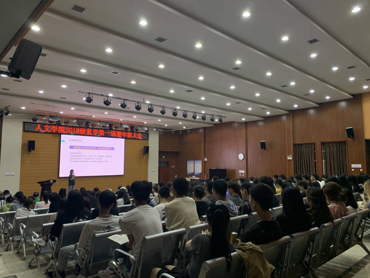 根据《bat365中文官方网站秋季学期开学和疫情防控工作方案》要求,结合学院具体工作安排。人文学院在开展线上“复学第一课”的同时,于8月31日—9月5日各年级自行组织了线下年级大会。