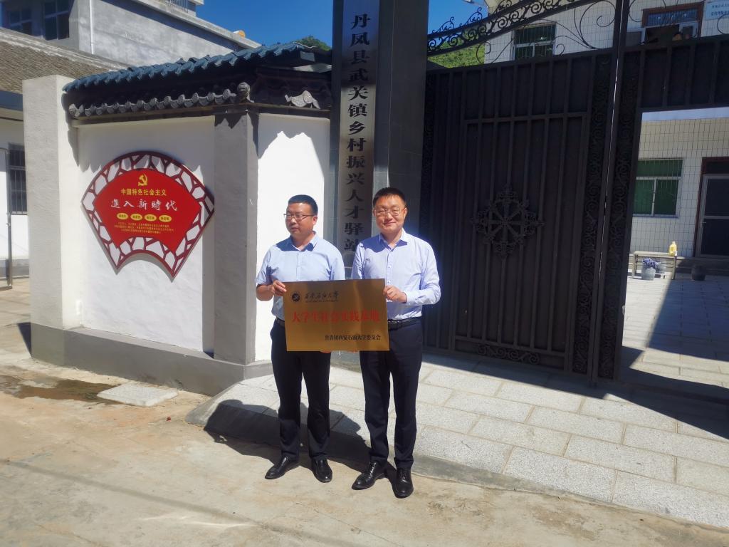 在武关镇人才驿站,丹凤县人民政府副县长张争京与bat365团委书记何国强共同为“bat365中文官方网站大学生社会实践基地”挂牌。