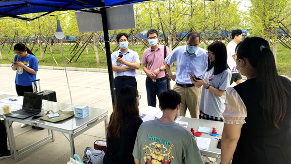 按照学校的统一部署,经过开学前的精心准备,材料科学与工程学院于2020年8月21-23日午迎来了2017、2018、2019级同学们的错峰返校。返校同学们佩戴口罩、拉着行礼,间隔1米以上,有序排队接受入校临检。材料科学与工程学院院领导齐仲锋、张骁勇、马文庆、宋海洋、朱世东等分组前往院系迎生接待点检查和指导迎生工作,察看学生们的返校情况,并与学生管理办公室主任郭荆老师、研究生辅导员王雷老师进行了交流,嘱咐迎接学生报到的工作人员尽职尽责地做好服务保障工作,让同学们感受到学院的温暖和关怀。