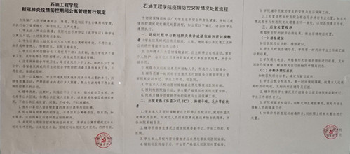 8月21日,学院结合上级部门关于疫情防控工作的最新要求及学校相关管理规定,摘录并整理了《新冠肺炎疫情防控期间公寓管理暂行规定》《疫情防控突发情况处置流程》等内容,张贴于宿舍及办公室门口,提醒学生返校后疫情防控的重要性。