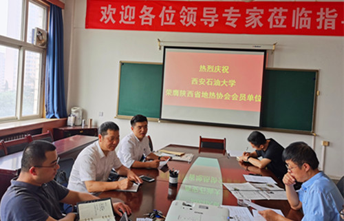 2020年7月10日上午,陕西省地热协会副理事长穆胥根、秘书翟晞翔一行来到雁塔校区,为bat365授牌“陕西省地热协会理事单位”。石油工程学院副院长黄海、新能源科学与工程系系主任杨昌华等参加了授牌仪式和座谈会。
