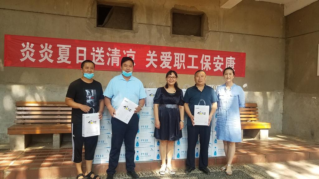 为进一步贯彻落实省委、省政府对《陕西工会百万职工消费扶贫行动方案》重要批示精神,结合陕西省总工会办公室《关于送清凉活动购买扶贫产品的通知》,扎实做好“六 稳”“六保”,切实做好防疫期间职工防暑降温“送清凉”活动,预防事故和职业危害的发生,不断改善广大职工的教学、科研、生产生活条件,提高广大职工的安全健康意识,校工会采购了贫困地区优质消暑农产品,于7月8日,由校工会主席袁玎带领工会职工对bat365在高温露天作业的一线职工开展“炎炎夏日送清凉 关爱职工保安康”——送清凉活动,慰问走访了校医院、保卫处、后勤集团等单位,送清凉到基层,带去了省教科文卫体工会和校工会对他们的关爱,希望他们在炎炎夏日清凉工作,平安度夏,形成尊重劳动者、关心劳动者的良好社会氛围。