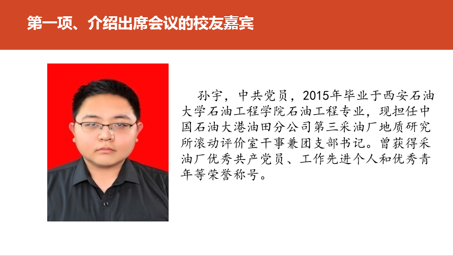 为进一步巩固《大学生职业规划与就业指导(2)》课程效果,学习优秀校友经验,增强我院2021届毕业生个人职业规划能力与就业发展意识,石油工程学院于6月23日晚7时,利用线上腾讯会议举办优秀校友就业指导分享会。本次会议分别邀请到我院2010级校友、中石油管道分公司上倍尧,2011级校友、西部钻探地质研究院张快乐与中石油大港油田孙宇出席,会议由2017级辅导员孙浩哲主持,石工院2017级全体学生参加。